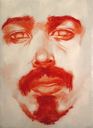 Silk screen in oil over blurred portrait – Partisan (Motivated Cognition)